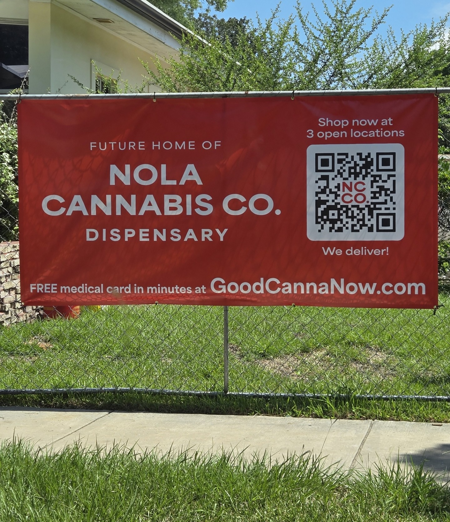 NOLA Cannabis Co. hung a banner at 1407 S. Carrollton Ave.—the first public announcement of the use of the site.